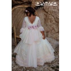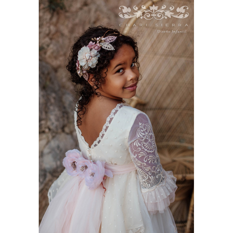 Vestido de Comunión modelo Oda. Incluye adorno floral en la espalda. Bordado exclusivo. No incluye tocado del pelo.
