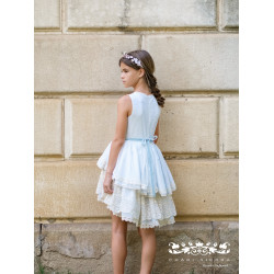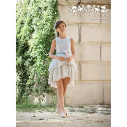Vestido Vuelo Cintura de la Colección Samira. Incluye Lazo y Flor del vestido. No incluye tocado del pelo.